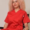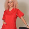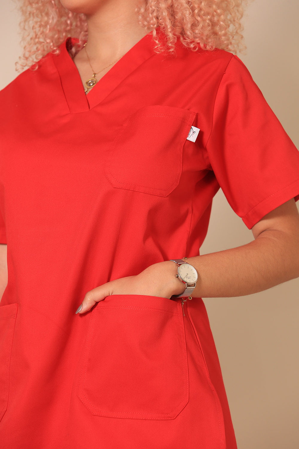 La tunique médicale : à col V, à manches courtes, à 1 poche poitrine et à 2 poches basses.